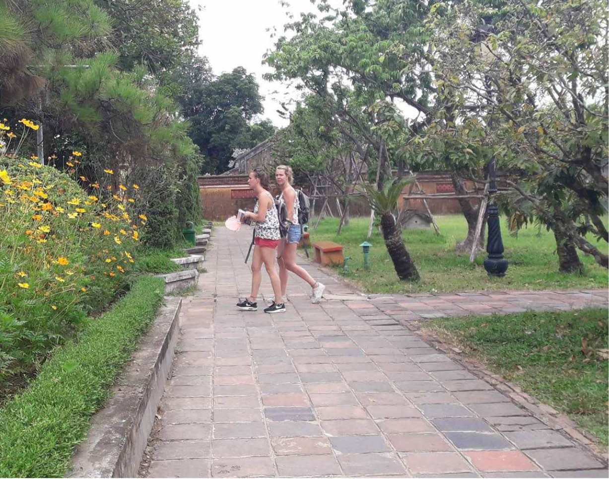 Cụ thể, khi vào các khu vực tôn nghiêm, trang phục của du khách không cao quá đầu gối, hở bụng, áo dây và áo khoét sâu lưng và ngực. Sau ngày 1/7, vẫn còn rất nhiều du khách đến tham quan các điểm di tích thuộc Quần thể Di tích Cô đô Huế có trang phục chưa phù hợp để vào chốn tôn nghiêm, có thờ tự. Cả khách quốc tế lẫn khách nội địa; trong đó, phổ biến vẫn là đối tượng khách quốc tế trẻ tuổi. Một số vị khách khi thấy biển báo hoặc được nhắc nhở, người thì chủ động khoác áo chống nắng, người thì vui vẻ dạo bên ngoài.