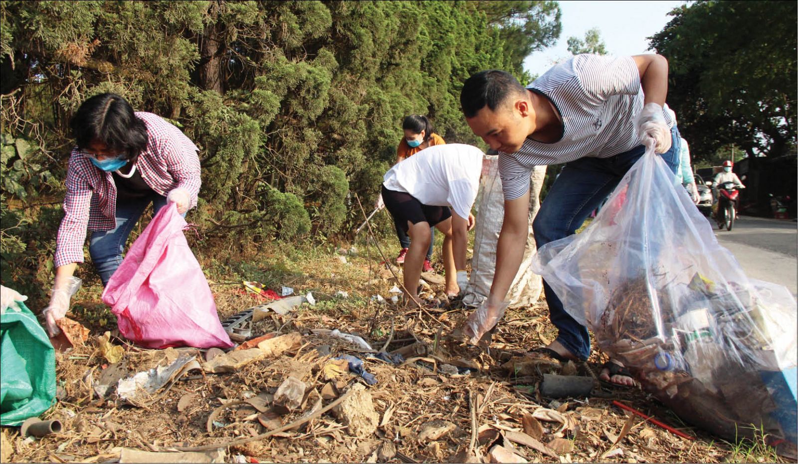 Không chỉ tuyên truyền trên mặt báo, đội ngũ những người làm báo ở Báo Thừa Thiên Huế còn thể hiện bằng hành động cụ thể, khi xuống đường nhặt rác, kêu gọi bảo vệ môi trường. Ảnh: P. Thành