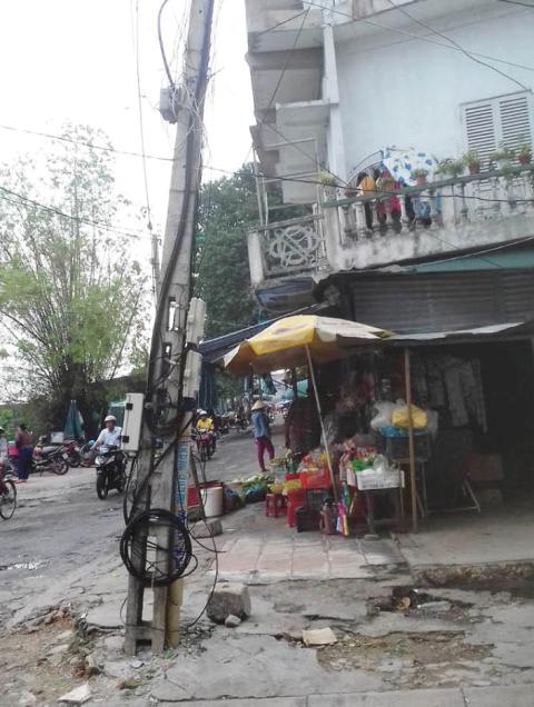 Ông Đ.N.H, một người dân sống ở đây cho biết, sau đợt áp thấp nhiệt đới vừa qua, cây gãy đổ đè lên dây cáp kéo trụ bị nghiêng, rạn nứt nhiều nơi. Sau khi xảy ra sự cố, người dân đã chặt cây để hạn chế nguy hiểm nhưng còn trụ cáp quang thì không xử lý được và đã nhiều lần phản ánh với người phụ trách VNPT ở khu vực, nhưng đã 10 ngày qua không thấy nhân viên đến sửa chữa, khắc phục. Ông H lo lắng, ngay tại ngã ba này thường xuyên họp chợ từ 8h sáng đến 13h chiều và từ 17h đến 18h tối, rất nhiều người mua bán, người tham gia giao thông qua lại, nếu chẳng may cột gãy đổ sẽ gây nguy hiểm cho nhiều người.