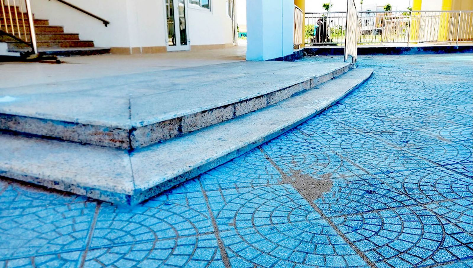 Khu vực bậc tam cấp của các khối nhà xuất hiện tình trạng lún đều làm biến mất một bậc tam cấp