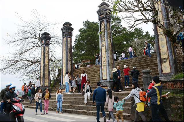 Đoạn đường ngang qua trước cổng chùa Thiên Mụ luôn đông đảo du khách