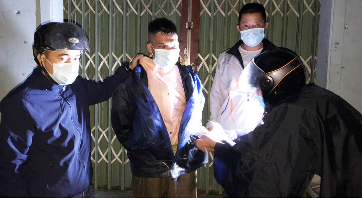 Đội Cảnh sát hình sự Công an TP. Huế bắt giữ đối tượng Trần Văn Mạnh (giữa) ngay trong đêm