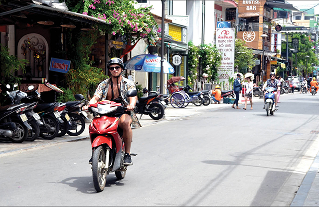 Khách nước ngoài dễ dàng thuê được xe máy và tham gia giao thông