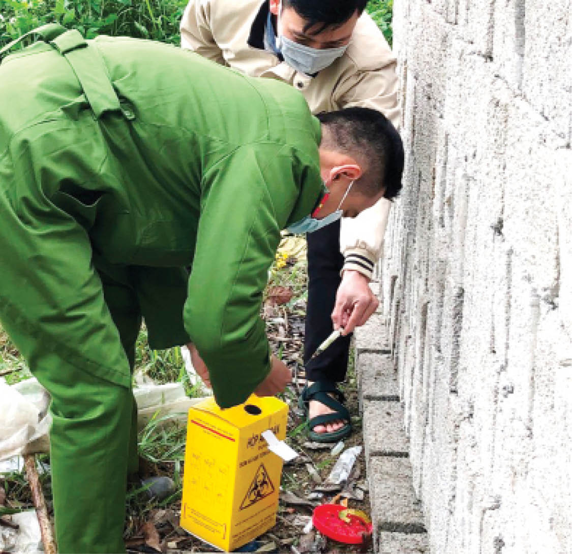 Công an phường Phú Hậu thu gom bơm kim tiêm
