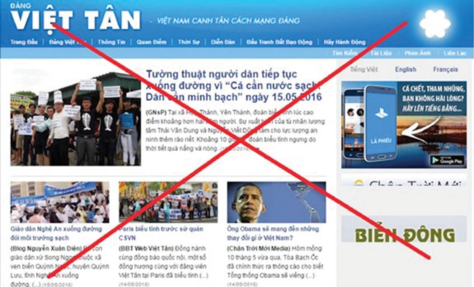 Việt Tân đăng tải bài viết kích động biểu tình. Ảnh: cand.com.vn