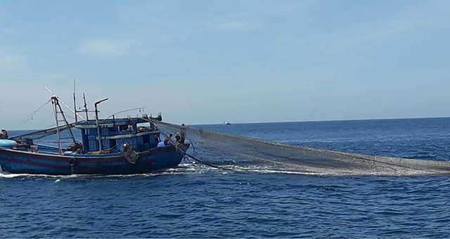 Lực lượng chức năng phát hiện tàu giã cào hoạt động trên vùng biển Phú Vang. Ảnh: Hải đội 2 cung cấp