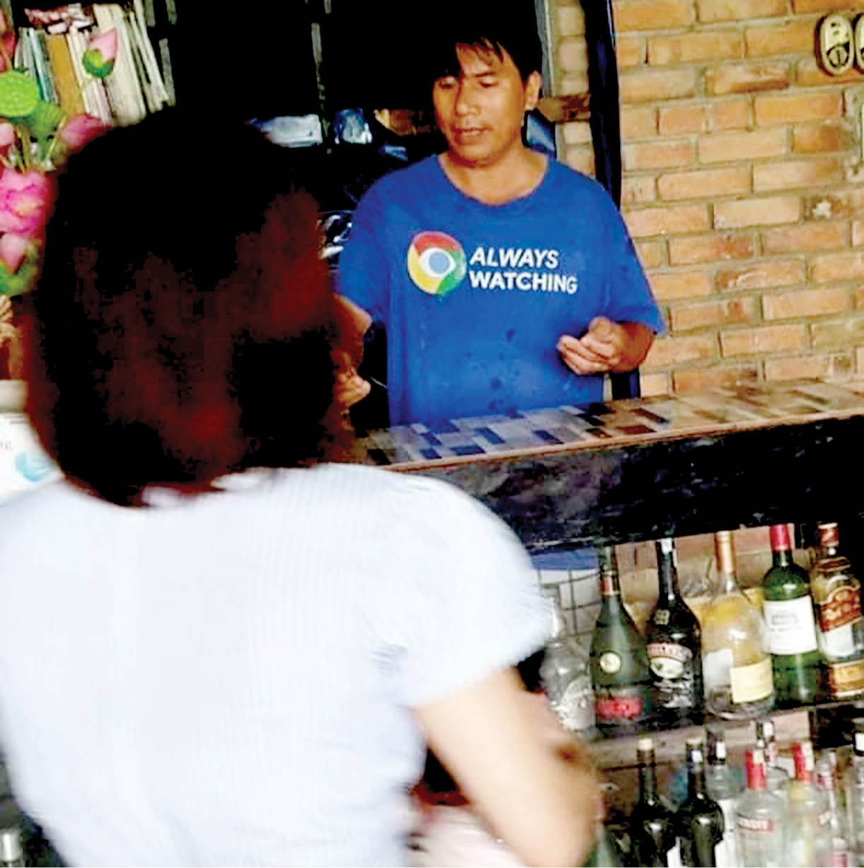 Người đàn ông (trong ảnh là người làm công cho chủ nhà nghỉ) trả lời không có niêm yết giá phòng