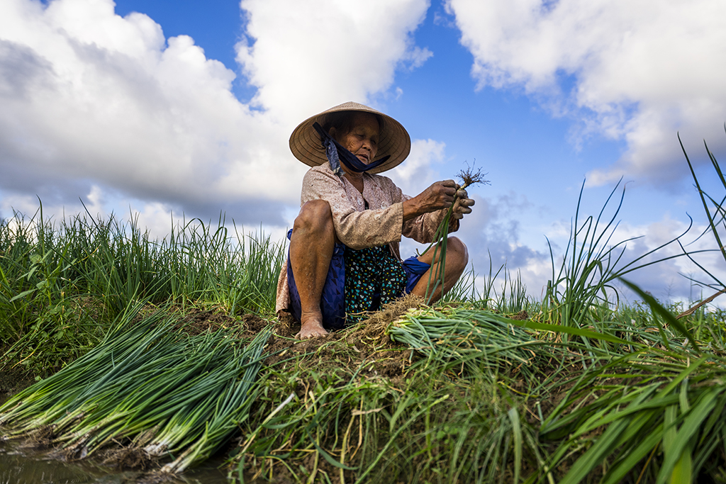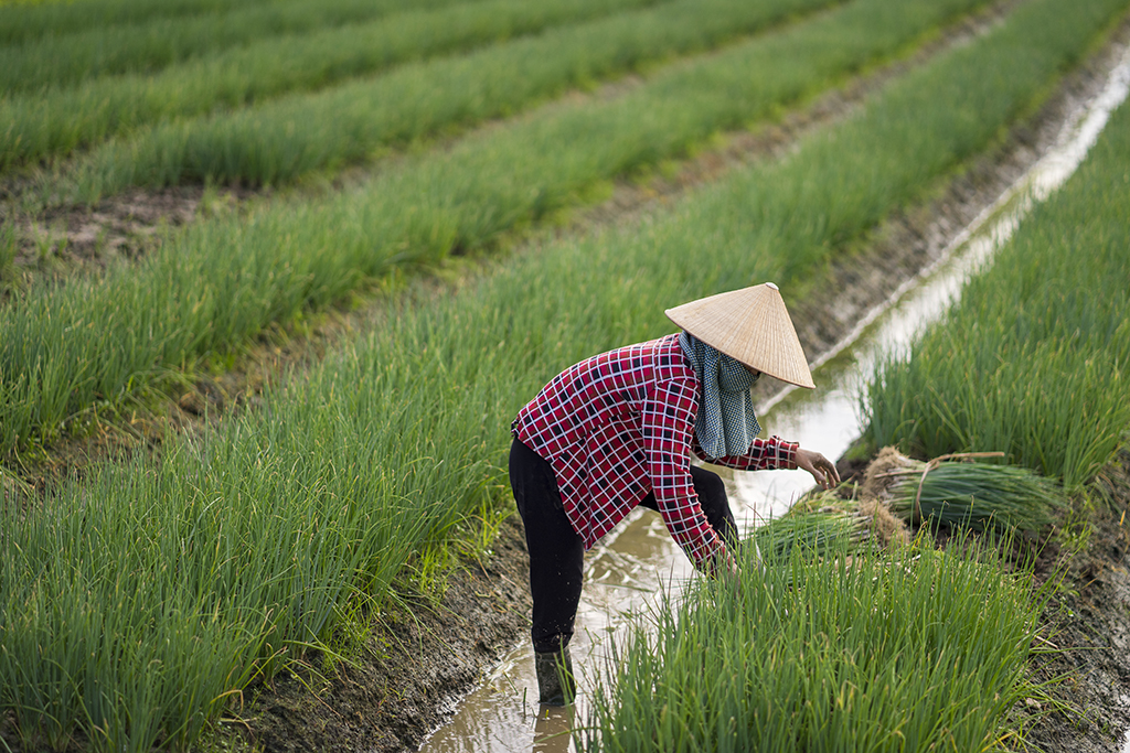 Chăm chút cho từng luống đất, vồng hành