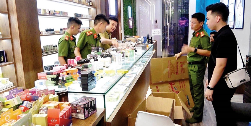 | Đội Cảnh sát kinh tế Công an TP. Huế phát hiện tại cơ sở kinh doanh Vape Gia Minh đang bày bán hơn 1.000 sản phẩm hàng hóa thuốc lá điện tử bất hợp pháp |