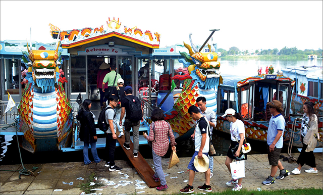 Du khách lên thuyền khám phá Huế bằng đường sông