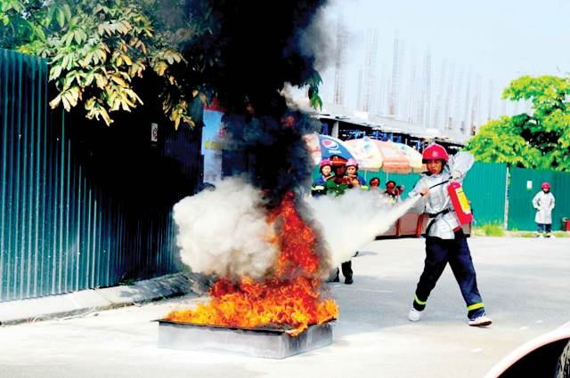 Diễn tập PCCC nâng cao kỹ năng nghiệp vụ dập tắt đám cháy