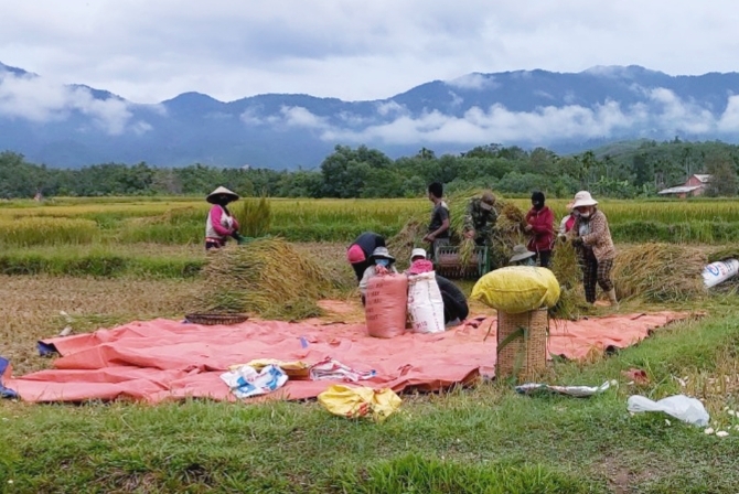Có thể vì diện tích ít (chỉ 2,1 ha), thấy mình đảm đương được nên bà con các thôn đã không cậy nhờ công an, quân đội như các nơi mà tự mình phân công nhau thu hoạch.