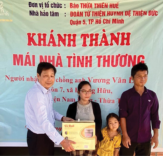 Lãnh đạo Báo Thừa Thiên Huế trao quà cho gia đình anh Vương Văn Lợm ngày vào nhà mới