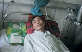 Chúng tôi đến phòng 405 Khoa Ngoại Tim mạch Bệnh viện Trung ương Huế cũng là lúc anh Thảo vừa từ phòng hồi sức về. Nằm bẹp trên giường bệnh, mặt mày anh Thảo xanh mét. Anh vừa được phẫu thuật một bệnh khác, nhưng do bị tim nặng nên phải nằm phòng hồi sức thời gian dài. Anh Thảo kể, giọng đứt quãng bởi những cơn thở mệt nhọc: “Tôi bị bệnh tim hơn hai mươi năm nay, nhưng hoàn cảnh khó khăn nên không có điều kiện chữa trị. Năm 2004, bệnh quá nặng nên gia đình phải chạy vạy cho tôi nhập viện. Rồi từ đó là hành trình chuyển từ bệnh viện này sang bệnh viện khác”. Từ Kon Tum, anh Thảo được chuyển ra Bệnh viện Trung ương Huế điều trị, rồi lại được chuyển ra Viện Tim mạch thuộc Bệnh viện Bạch Mai, Hà Nội. Bác sĩ chỉ định phải mổ, nếu không sẽ nguy hiểm tính mạng. Chi phí cho cuộc phẫu thuật lúc đó là 50 triệu đồng. “Đối với gia đình tôi điều này thật kinh khủng. Cuộc sống đã khó khăn, ngày càng khốn khó vì tất cả tài sản, nhà cửa ruộng vườn đều đã đem cầm cố, thế chấp vay mượn để lo tiền cho ca mổ”.