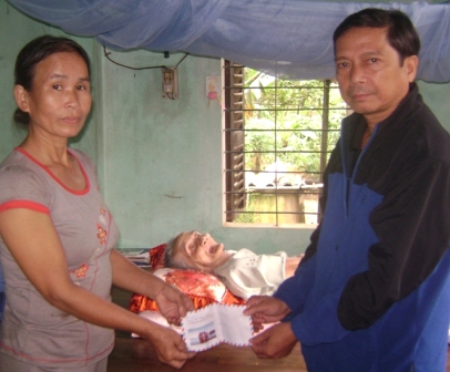 Ông Hồ Thái Anh trao số tiền độc giả ủng hộ mệ Thuyền