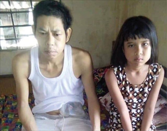 Cháu Thúy Kiều (bên phải) cùng với người cha bị bệnh nặng