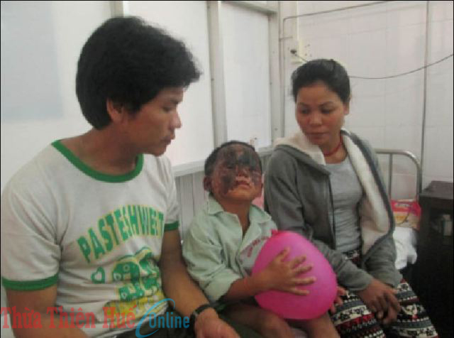 HNN - Trong lúc dùng xăng nhóm bếp để nấu nước chế mì tôm, em Hồ Văn Súc không may bị ngọn lửa táp vào mặt, khiến khuôn mặt em bỏng hoàn toàn.
