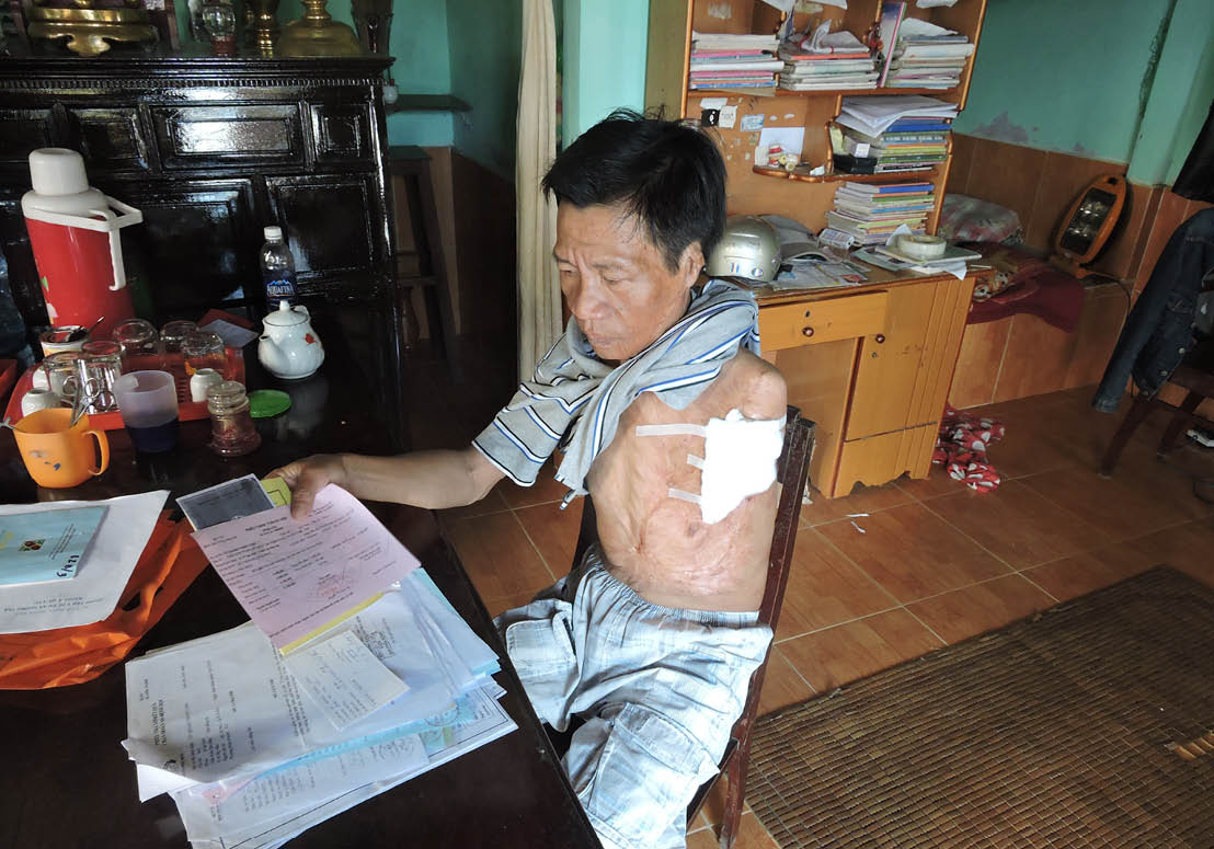 Cánh tay trái của ông Long đã bị cắt bỏ