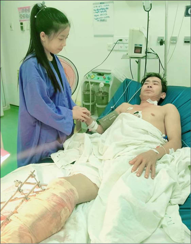 Con gái đầu của anh, cháu Mỹ Tiên khi nghe ba bị tai nạn đã xin ra chăm ba, nhưng một đứa trẻ 14 tuổi biết làm gì khi trong nhà không tiền bạc, bà nội, o chú đều nghèo khó…