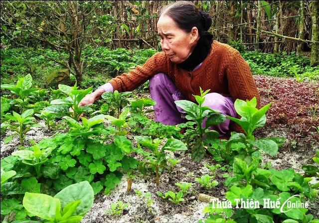 Bà Cúc hàng ngày kiếm miếng ăn từ vườn rau nhỏ