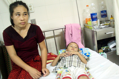 Cháu Cao Văn Hoàn (và mẹ) tại Bệnh viện Trung ương Huế đang chờ mổ