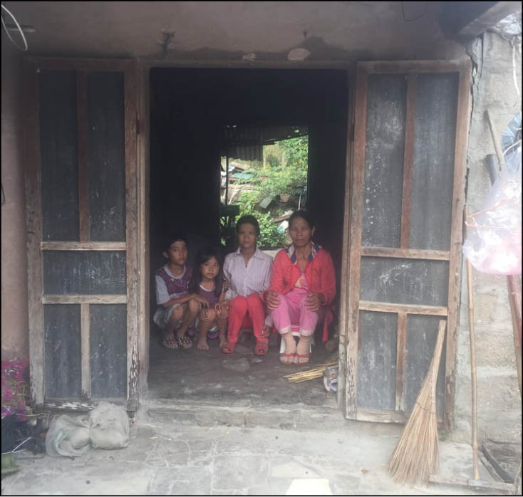 Bà Tẩy bị câm bẩm sinh (phải) và chị dâu tâm thần, tàn tật, cùng 2 cháu suy dinh dưỡng