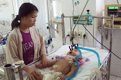 Ngồi thất thần phía ngoài cánh cửa phòng cấp cứu, chị Trần Thị Phương (trú tại khu phố 3, phường An Đôn, thị xã Quảng Trị), kể lại: “Ngày 8/3/2012, vợ chồng tôi phát hiện con bị sốt nhẹ, mẩn đỏ ở hai đầu gối, sau đó xuất hiện mấy hạt ở lưng, mông. Đến 2 giờ sáng ngày 9/3, thấy có mấy hạt chấm trắng trong miệng con, chúng tôi vội vã đưa Sơn đến Bệnh viện Đa khoa tỉnh Quảng Trị. Bác sĩ cho biết, cháu Sơn bị bệnh tay chân miệng độ 1, chỉ cần điều trị vài ngày là về.