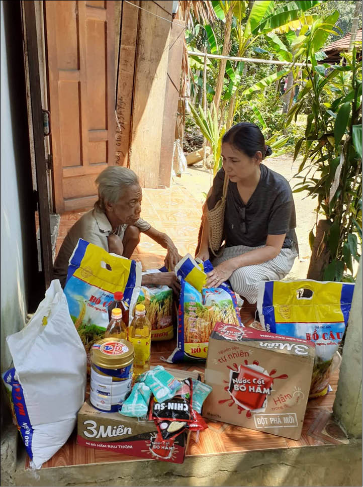 Các cụ đều là người dân tộc Cơ tu. Mỗi suất quà theo dự định ban đầu chỉ là nhu yếu phẩm thiết như gạo, muối, nước mắm, dầu ăn trị giá từ 150.000 đồng/suất/tháng. Nhưng với sự hỗ trợ hiện có chúng tôi đã nâng lên mức gần 300.000 đồng/suất/tháng, đặc biệt tặng sữa bột để một số cụ bồi dưỡng vì hầu hết đều già yếu.