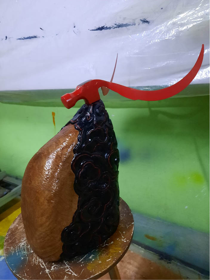 Ngoài gallery Sông Như, tại triển lãm tranh “Mùa xuân và con giáp” trưng bày ở Trung tâm Nghệ thuật Lê Bá Đảng, người xem cũng được thưởng thức nhiều tranh vẽ, sắp đặt con giáp thú vị. Với hai tác phẩm “Dưới cánh đồng” bằng sơn mài, nghệ sĩ Nam Thành Trung thể hiện hình tượng con trâu bằng ngôn ngữ đồ họa. Những đường nét trên nền hòa sắc ấm gợi cho người xem về sức mạnh của trâu, một hình ảnh đẹp đẽ nơi cánh đồng. Sắc vàng trong tác phẩm cũng là một ẩn dụ thú vị, như sự mong cầu về những mùa vàng bội thu, no ấm, đủ đầy.