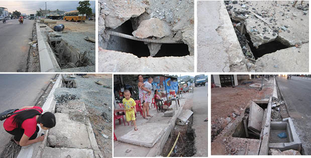 Hố ở giữa đường có thể vá như thế, nhưng nhan nhản những miệng hố dọc đoạn đường dài là nguy cơ tiềm ẩn, nhất là đối với người già, trẻ con. Nhiều phụ nữ cho biết, họ phải giữ con rìn rịt, không dám để các cháu ra đường chơi, sợ lọt xuống hố. Nhiều người dân khác lại than thở, nhiều đoạn cống không có nắp dẫn đến tình trạng người qua đường thiếu ý thức vô tư phóng uế xuống. Những hộ dân sống gần đó “lãnh đủ” mùi ô nhiễm.