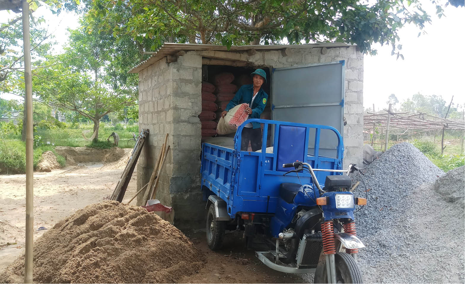Xe 3 bánh vào chở vật liệu từ bãi đúc bờ lô của ông K. đi nơi khác