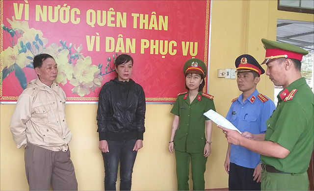 Cơ quan Cảnh sát điều tra thi hành lệnh bắt tạm giam bị can Hoàng Thị Nhiên (thứ hai bên trái)