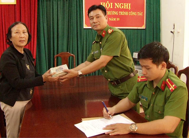 Đội Cảnh sát hình sự Công an TP. Huế trao trả tiền cho người dân bị kẻ gian lấy trộm