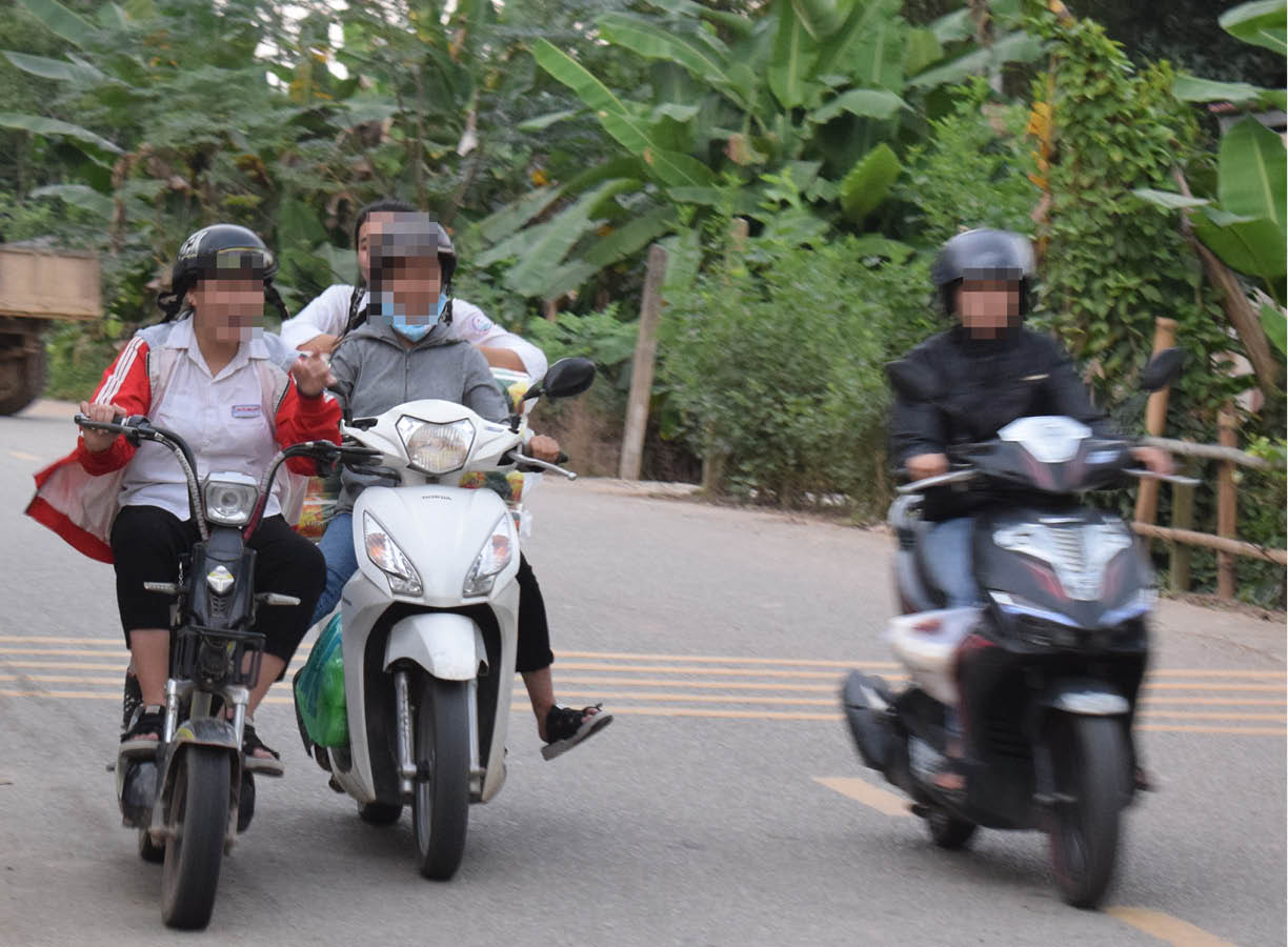 Nhiều học sinh khi tham gia giao thông còn lạng lách, đánh võng, chở quá người quy định, không đội mũ bảo hiểm, đi hàng 3 hàng 4...