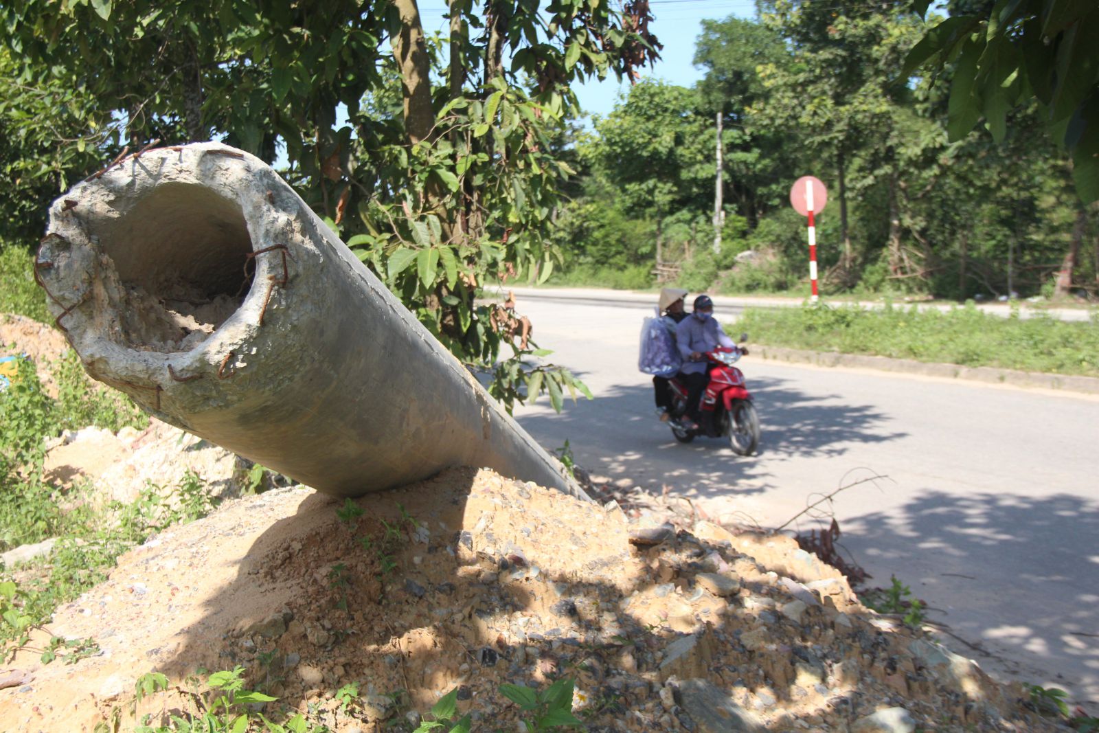 Trụ bê tông nằm trên mô đất cao, sát lê đường Võ Văn Kiệt đe dọa người qua lại