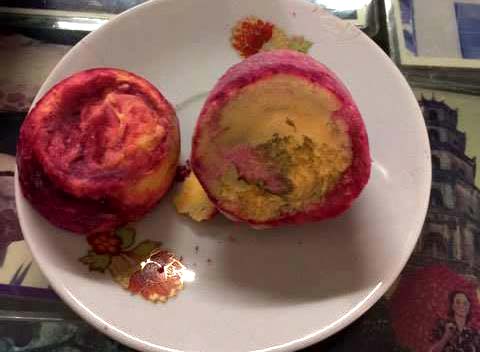 Quả trứng sau bao ngày bỏ trong tủ lạnh vẫn còn màu hồng đậm và có mùi hôi.