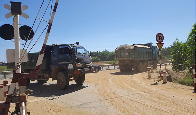 Xe tải lớn thường xuyên qua lại gác chắn 718+200