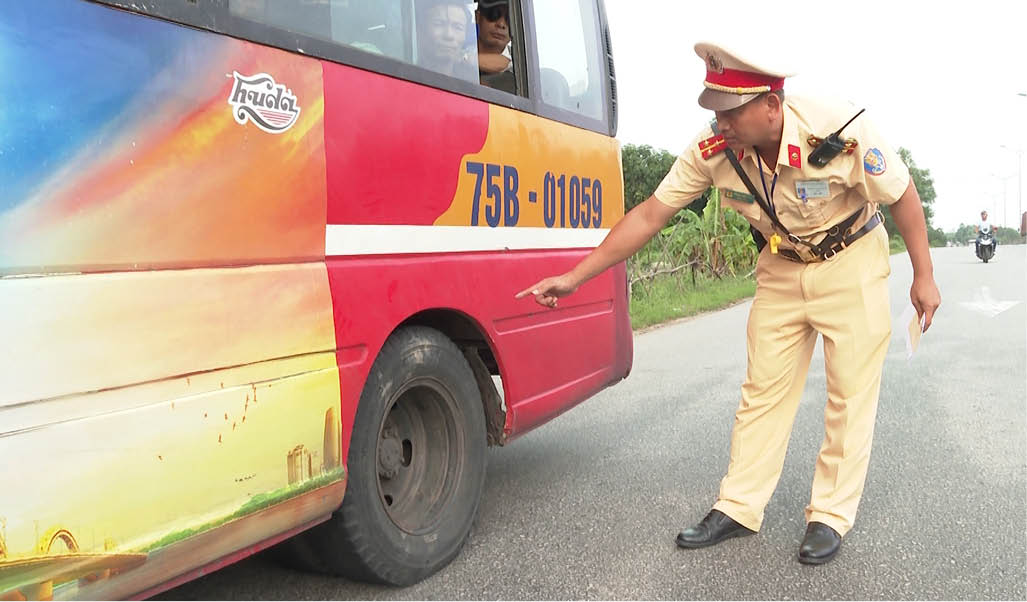 Khi tài xế điều khiển xe đến địa phận phường Thủy Phương, thị xã Hương Thủy thì bị lực lượng CSGT phát hiện và yêu cầu dừng xe kiểm tra. Qua kiểm tra, còn phát hiện phương tiện xe buýt không đảm bảo chất lượng an toàn kỹ thuật: lốp đã bị mòn rách, cần điều khiển không thể sử dụng linh hoạt, trang thiết bị xuống cấp…