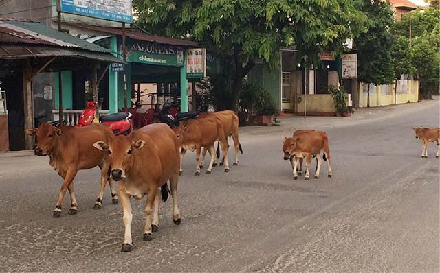 Bò nghênh ngang trên đường Lê Ngô Cát (TP. Huế). Ảnh minh họa: DT