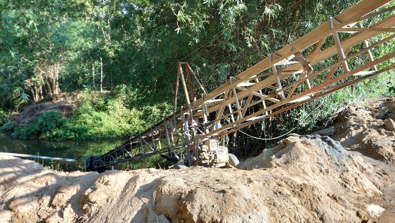 Băng tời tại bãi tập kết cát, sỏi trái phép rộng hơn 2.000m2 của ông Thân Trọng Trai