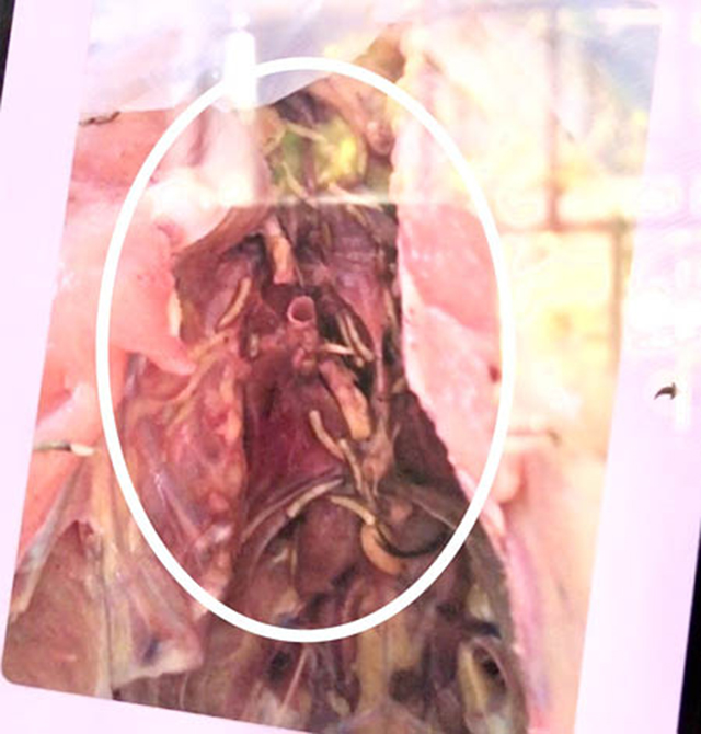 Những sinh vật trong bụng con gà được xác định là sâu canxi (ảnh nhỏ)