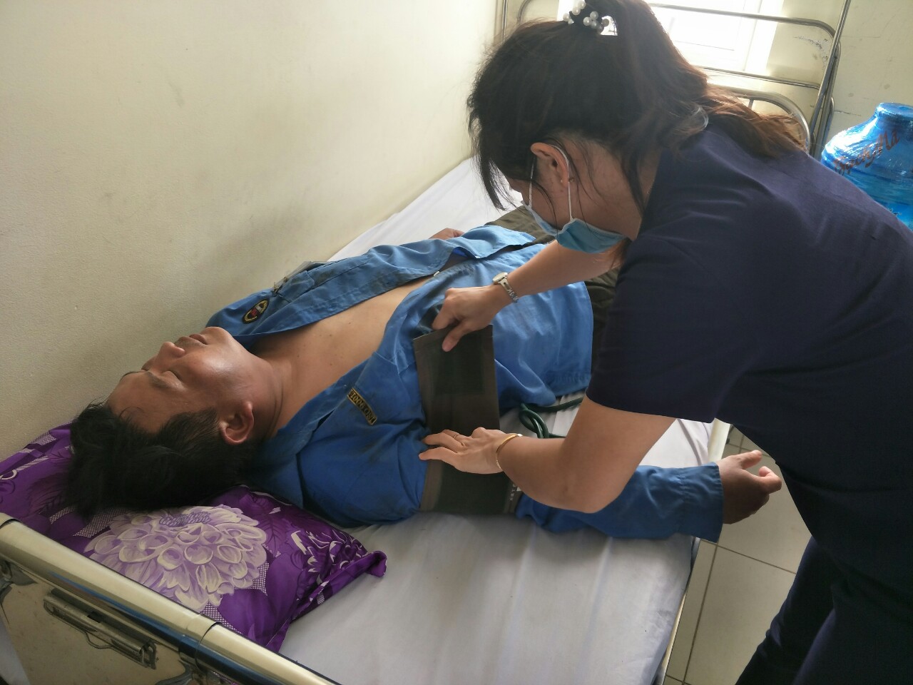 Sau xô xát, một nhân viên của Công ty CP Xi măng Đồng Lâm bị ngất phải cấp cứu