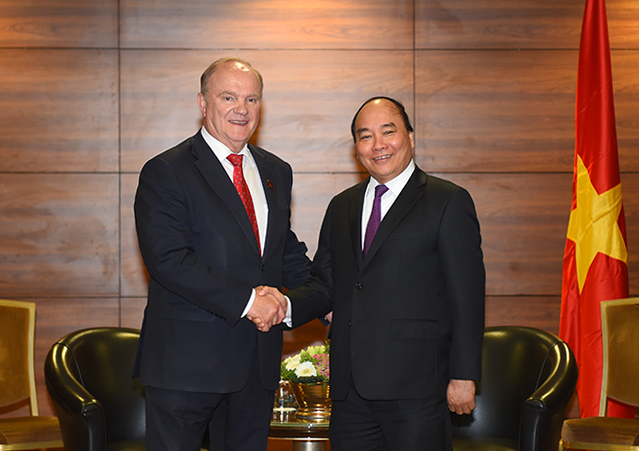 Trong khuôn khổ chuyến thăm chính thức Liên bang Nga, ngày 16/5, Thủ tướng Chính phủ Nguyễn Xuân Phúc đã có cuộc gặp Chủ tịch Đảng Cộng sản Liên bang Nga, Ghenady Zyuganov.