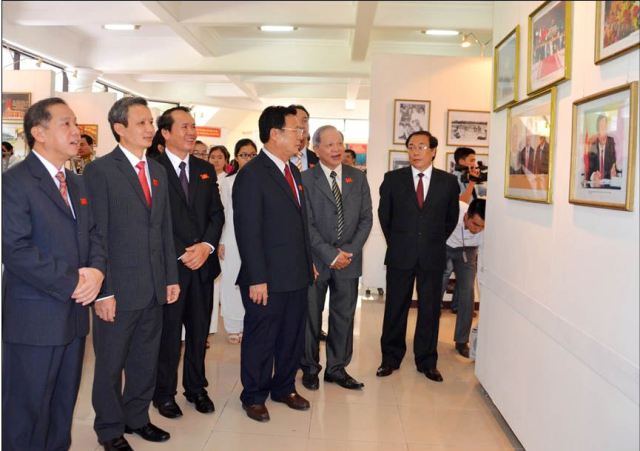 Trước khi khai mạc triển lãm, Đoàn đại biểu dự Đại hội Đảng bộ tỉnh lần thứ XV, nhiệm kỳ 2015 – 2020, đã dâng hoa và kính cẩn nghiêng mình tưởng nhớ Chủ tịch Hồ Chí Minh tại Bảo tàng Hồ Chí Minh.