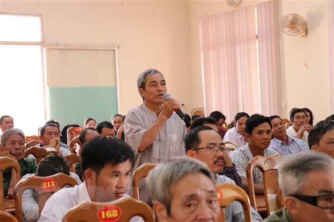 Cử tri nêu kiến nghị tại buổi tiếp xúc. (Ảnh minh họa: Hồng Điệp/TTXVN)