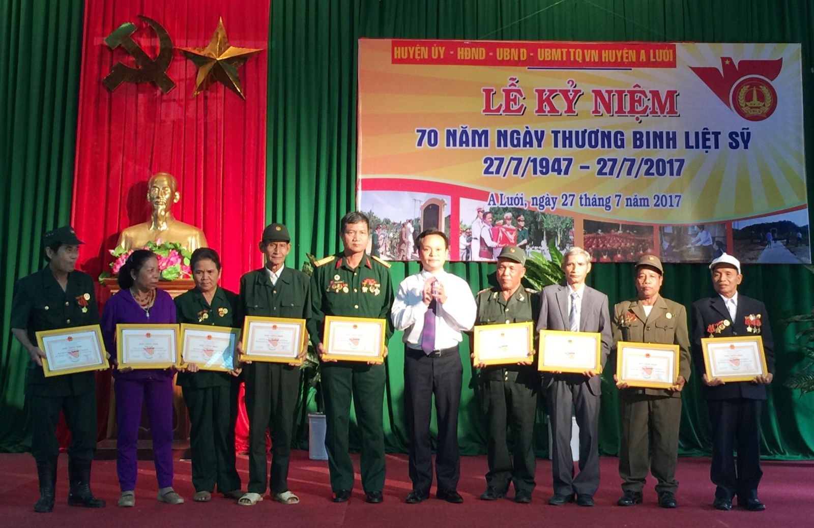 Theo đó, UBND huyện A Lưới đã biểu dương và cấp giấy công nhận người có công tiêu biểu cho 70 đối tượng; khen thưởng 5 tập thể và 7 cá nhân có thành tích xuất sắc trong phong trào “Đền ơn đáp nghĩa”.