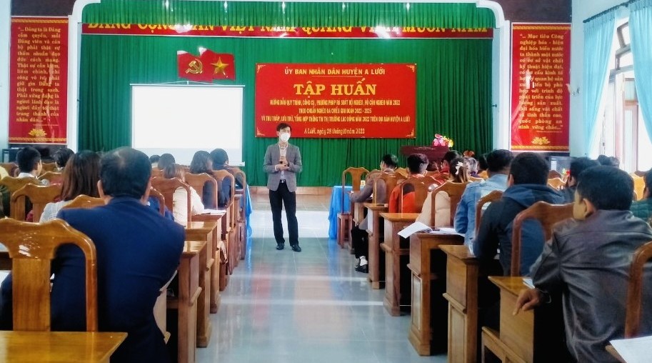HNN.VN - Ngày 28/10, huyện A Lưới tổ chức tập huấn, thu thập, lưu trữ, tổng hợp thông tin thị trường lao động năm 2022 cho 264 đại biểu là đại diện lãnh đạo UBND, cán bộ, công chức văn hóa xã hội phụ trách lao động xã, điều tra viên các xóm, tổ dân phố thuộc các xã, thị trấn trên địa bàn huyện.