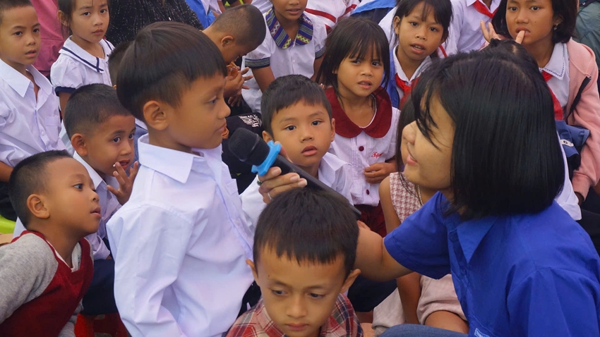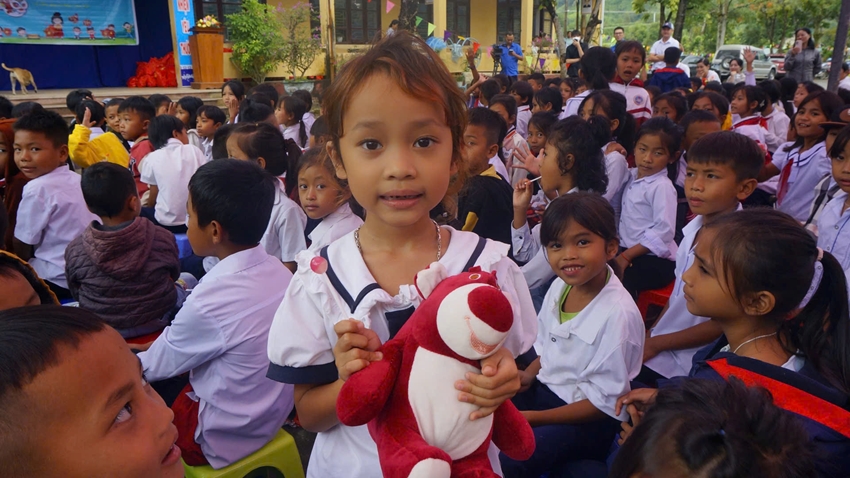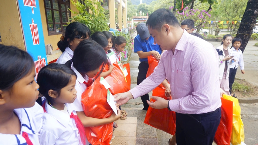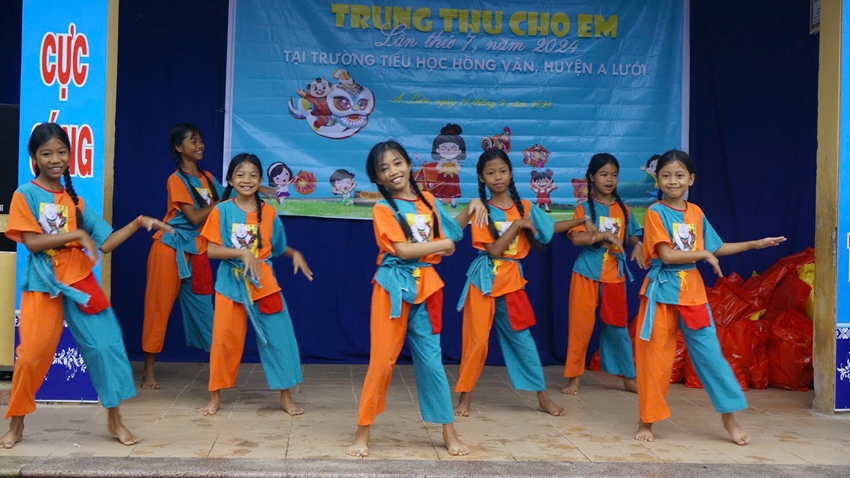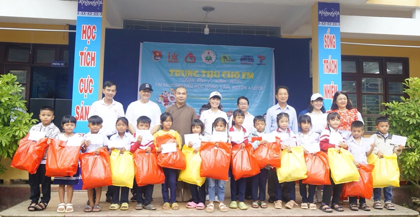 HNN.VN - Sáng 11/9, Quỹ Sen xanh, Chi đoàn Báo Thừa Thiên Huế phối hợp cùng Công ty cổ phần Xây lắp Thừa Thiên Huế, Công ty HUDATEX, Công đoàn Ngân hàng Chính sách Xã hội tỉnh, chùa Phật Quang tổ chức chương trình "Trung thu cho em" cho học sinh Trường tiểu học Hồng Vân, xã Hồng Vân, huyện A Lưới.
