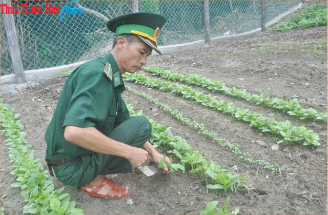 "Chúa đảo" Phạm Quang Thắng chăm sóc vườn rau xanh tăng gia cải thiện đời sống cho cán bộ, chiến sĩ trên đảo