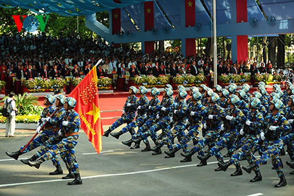 Lực lượng cảnh sát biển trong Lễ diễu binh kỷ niệm 40 năm thống nhất đất nước. Ảnh: Quang Trung